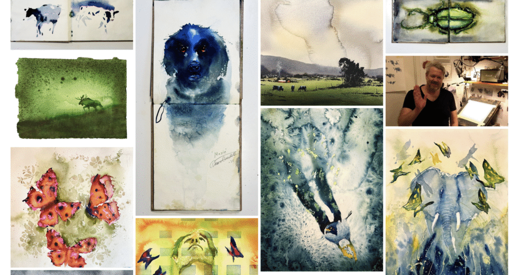 Tack till mina deltagare som deltagit i Akvarell Akademin 2025 med start januari till juni. I online-kursen har målat vi motiv med abstrakta inslag som landskap, fåglar, insekter, djur och människor.